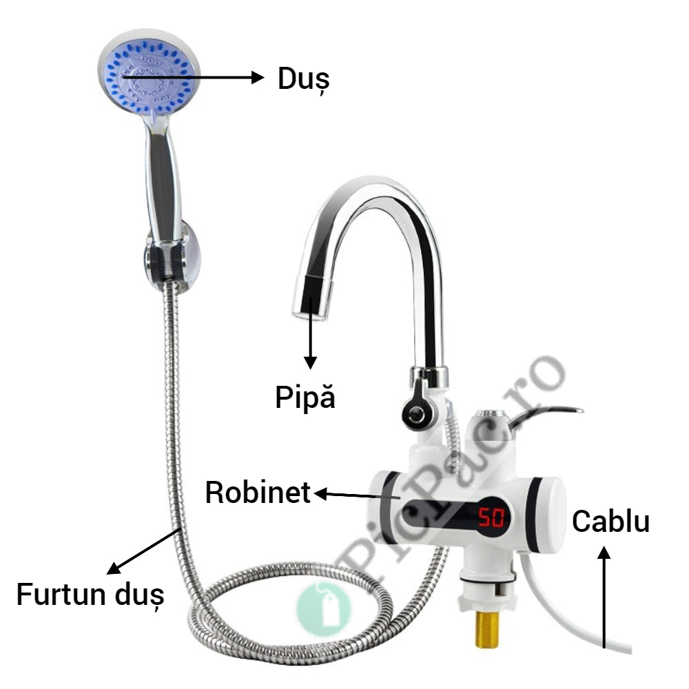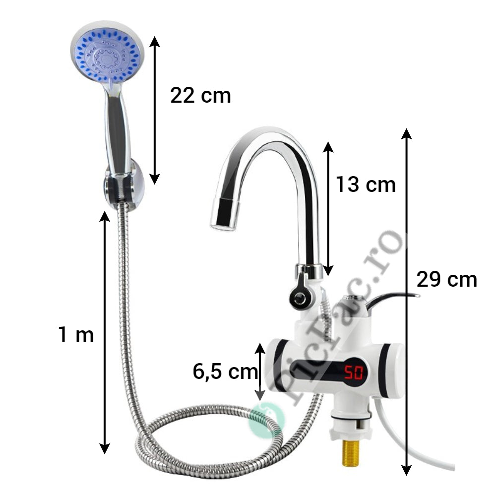 - Arata ca un robinet normal, dar in interior are un element ce incalzeste apa la o temperatura de pana la 60° C.