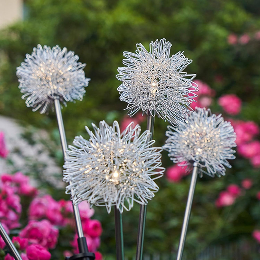 Decoratiune pentru exterior, lumini cu incarcare solara, model papadie din aluminiu, Argintiu cromat