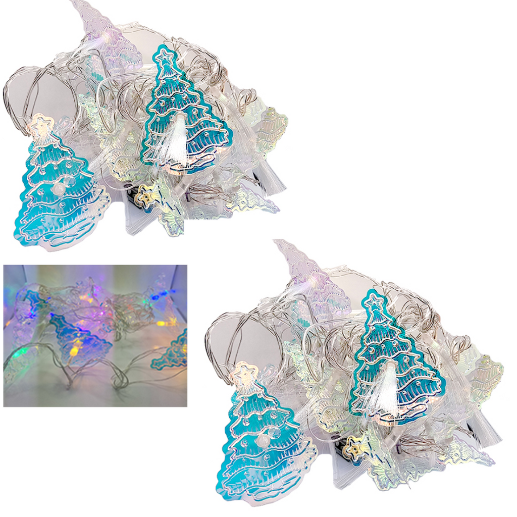 Instalația multicoloră cu model de brazi este o alegere populară pentru decorarea sărbătorilor de iarnă.