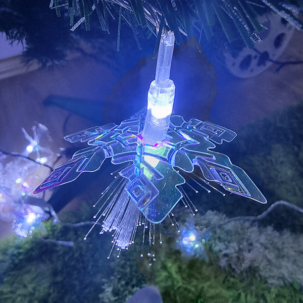 Modelul de fulgi de zăpadă adaugă un aspect festiv, evocând atmosfera de iarnă și sărbătoare. Este ideal pentru decorarea bradului.