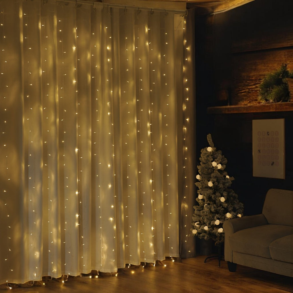 Continut pachet: 2 x Instalatii Craciun tip perdea, 3 m x 3 m Alb Cald
