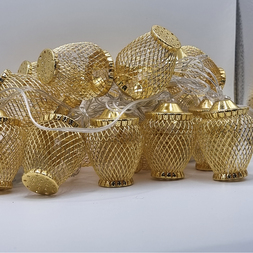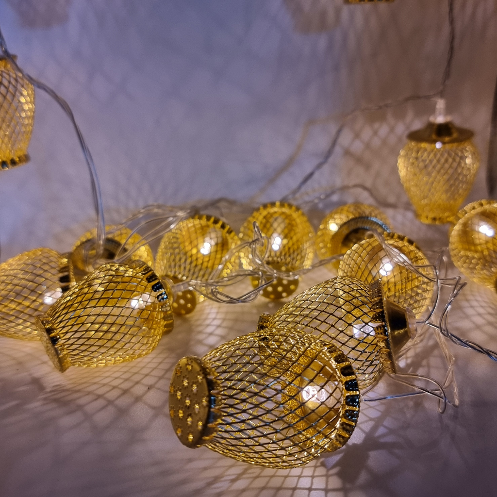 Instalatia este echipata cu 20 globuri aurii  si include LED-uri cu lumina alba calda, relaxanta si odihnitoare. Acest produs se alimenteaza la 220V, are un grad de protectie de IP20, ce recomanda utilizarea la interior, iar transformatorul este inclus.