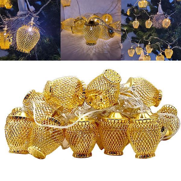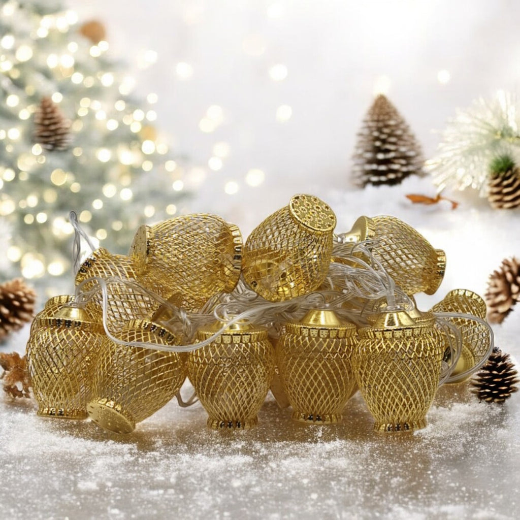 Continut pachet: 2 x  Instalatii globuri aurii Craciun, 20 LED-uri cu lumina alb cald