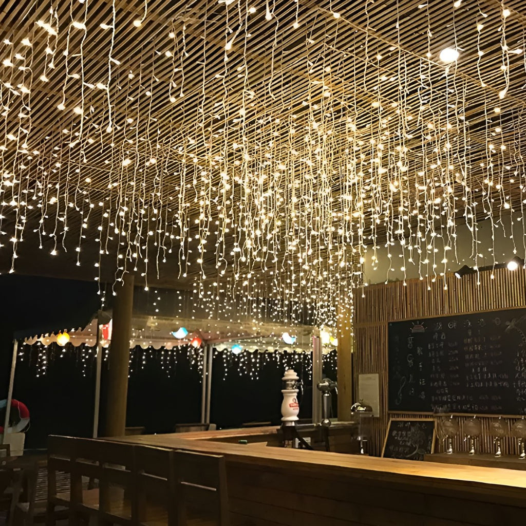 Perdea luminoasa de led-uri in forma de franjuri, ce dau un aspect aparte, natural si plin de magie.
