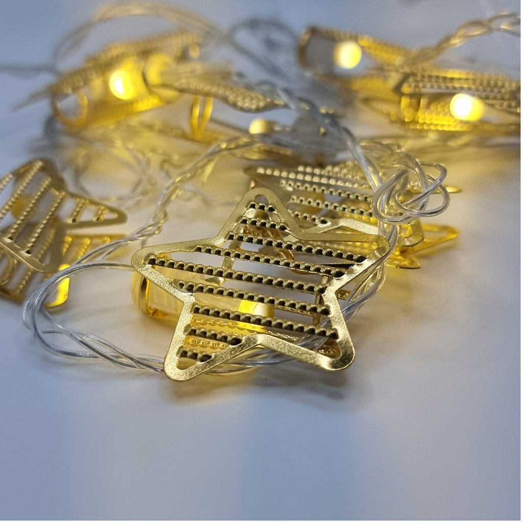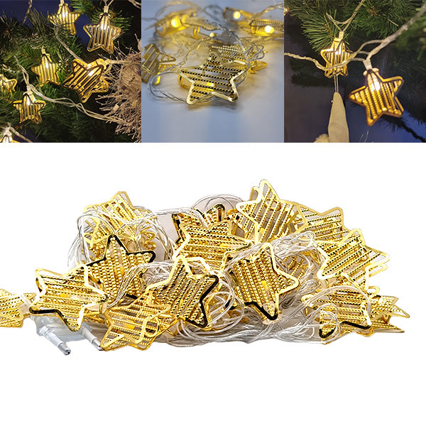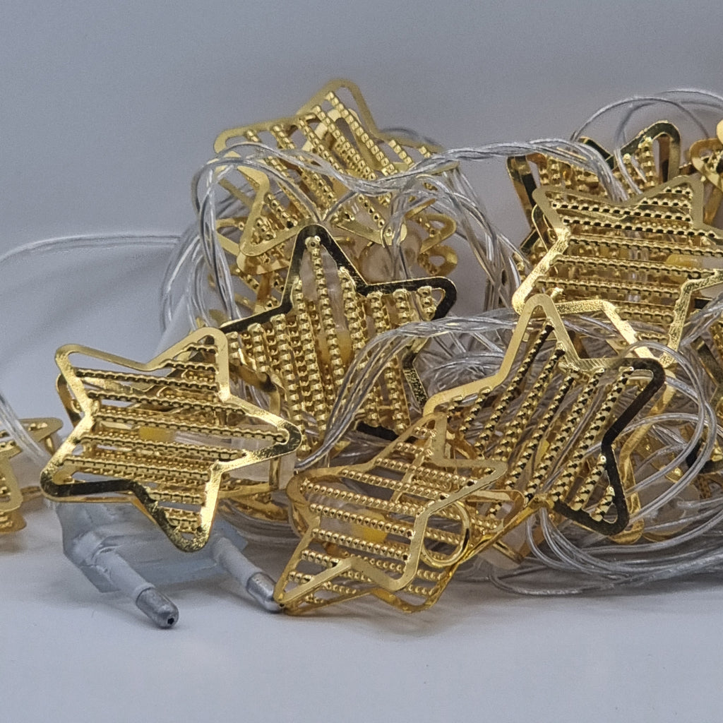 Instalatie tip STELE cu 20 stelute LED aurii, culoare alb cald, luminite decor pentru bradul de Craciun si casa