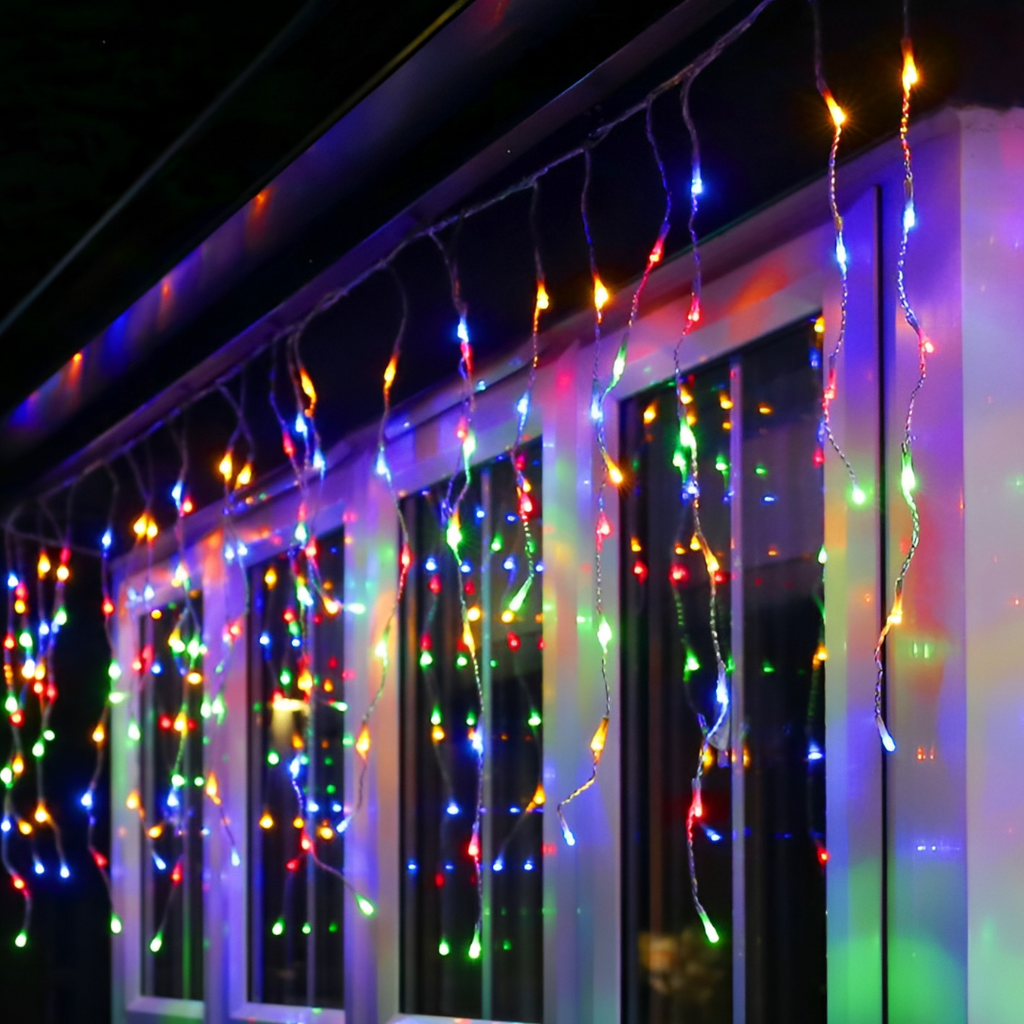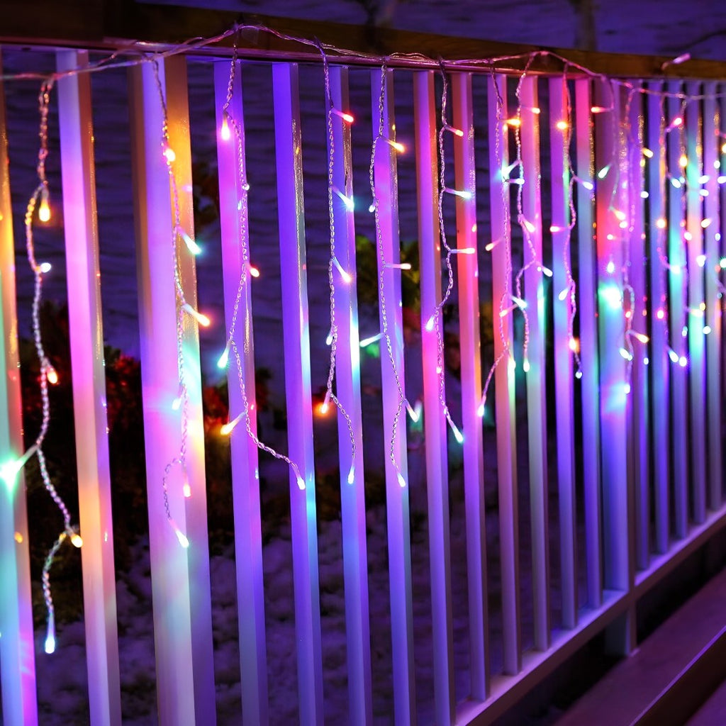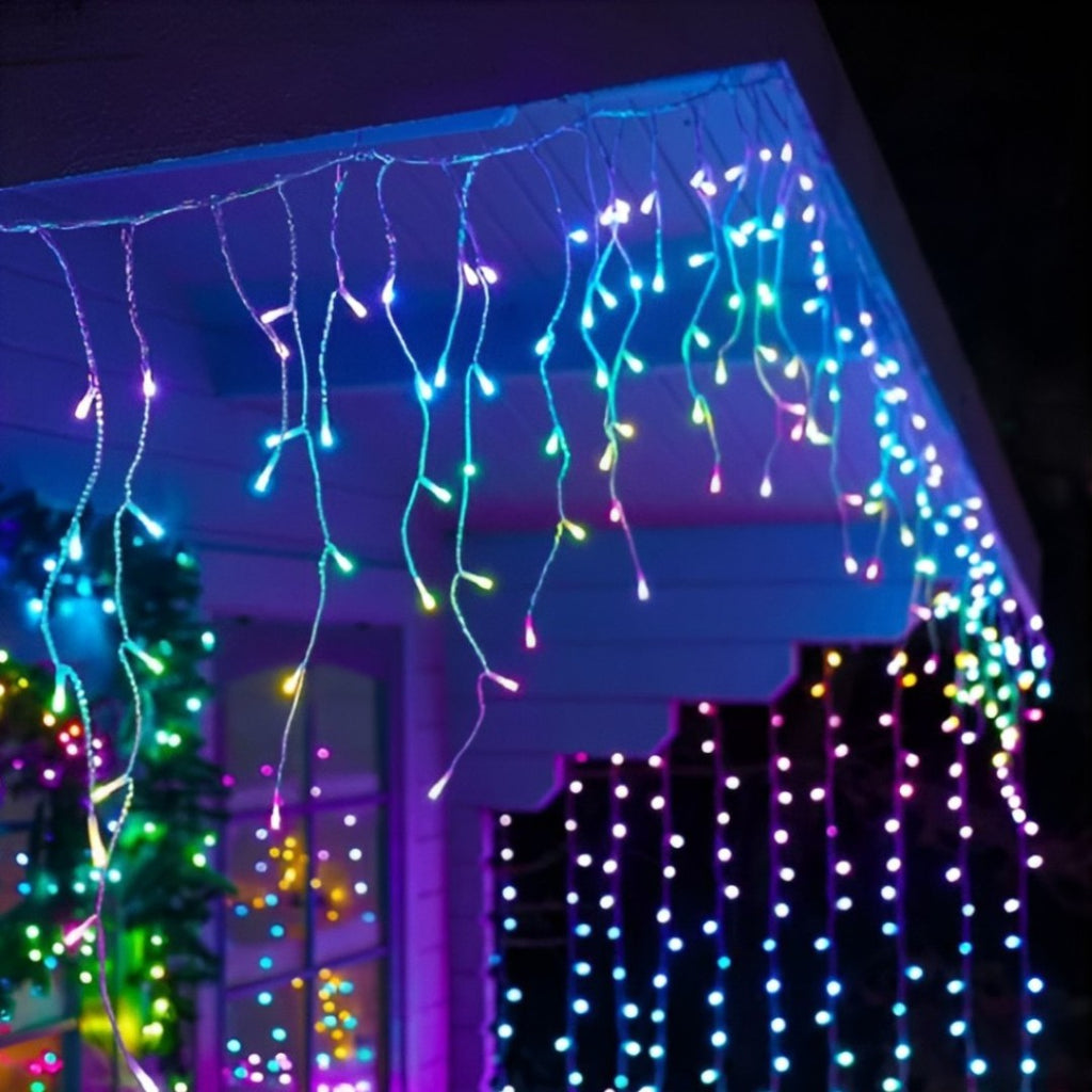 Instalatie led cu franjuri, de exterior, multicolora, 200 de beculete, 8m lungime, foarte rezistenta, cu joc de lumini