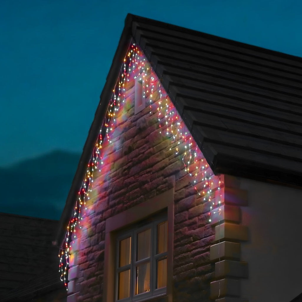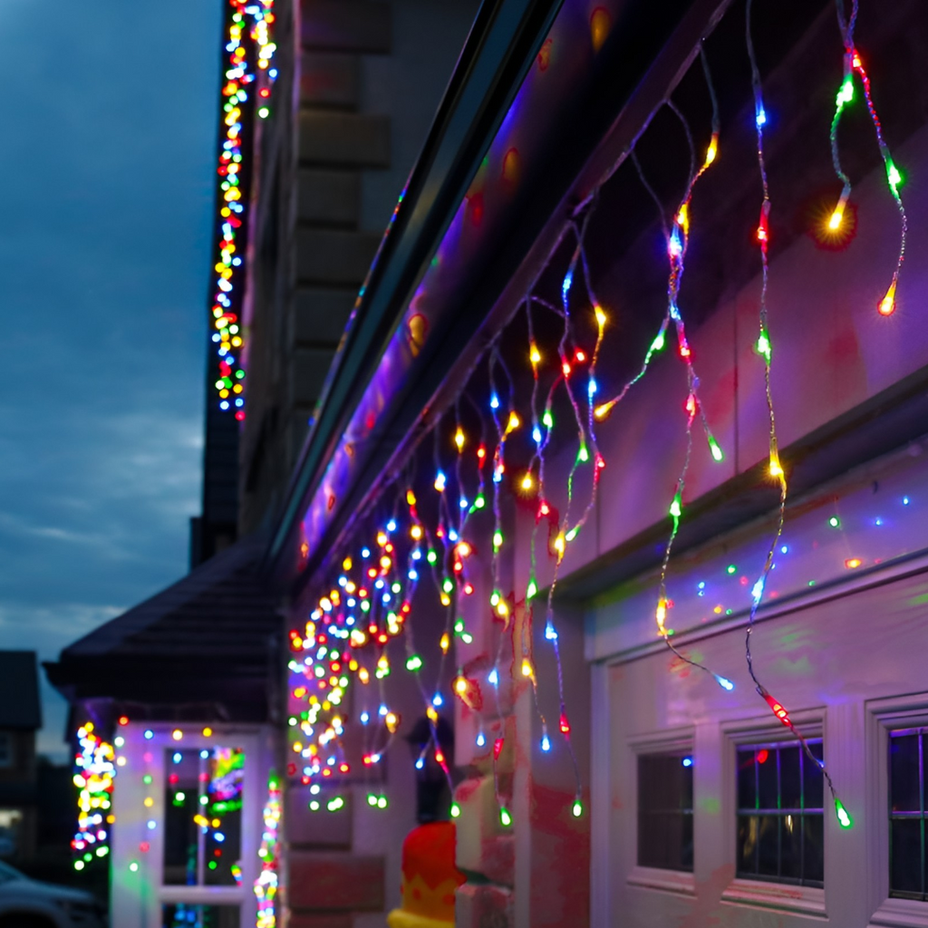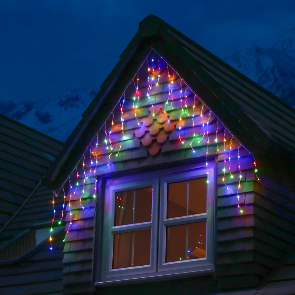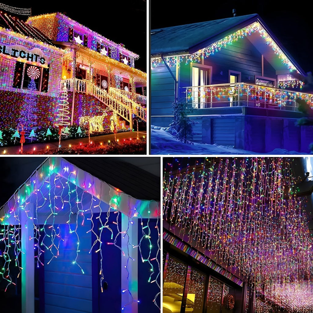 Instalatie led cu franjuri, de exterior, multicolora, 200 de beculete, 8m lungime, foarte rezistenta, cu joc de lumini