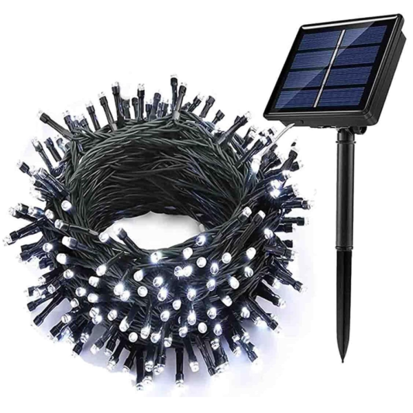 Alimentare Solara: Modulul solar se fixeaza pe sol folosind tarusul, iar lumina solara asigura energia necesara. Un comutator este folosit pentru a seta ghirlanda luminoasa pe diverse jocuri de lumini.