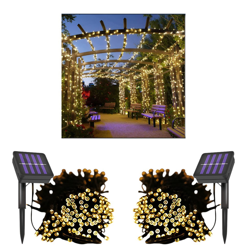 Continut pachet: 2 x Instalatie solara cu 100 Leduri, 10 m Alb Cald