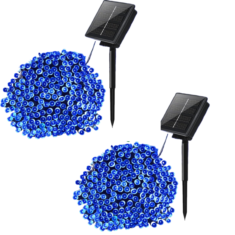 Continut pachet: 2 x Instalatie solara cu 100 Leduri, 10 m Albastru
