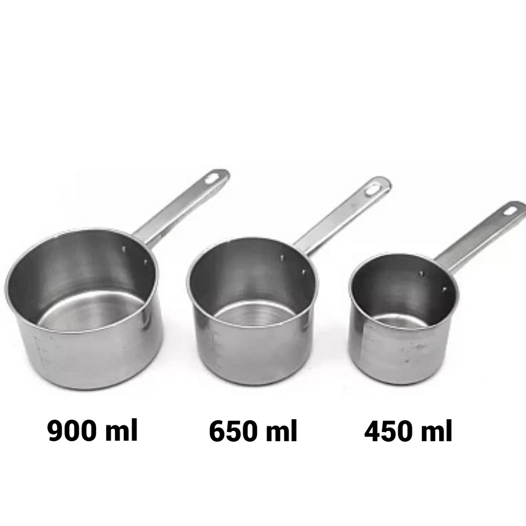 Aduceți eficiența și stilul în bucătăria dumneavoastră cu acest set de 3 ibrice premium din otel inoxidabil! Gândite pentru a satisface toate nevoile de gătit, aceste ibrice vin cu capacități de 900 ml, 650 ml și 450 ml, fiind ideale pentru prepararea diverselor rețete, de la sosuri fine la supe aromate sau porții individuale.