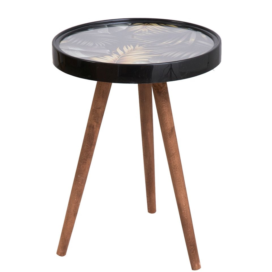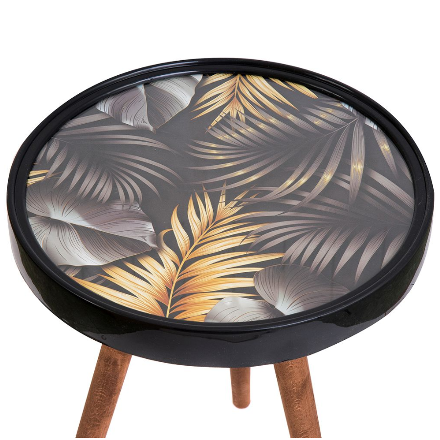 Culoare: blat negru cu imprimeu auriu tropical, picioare lemn natural