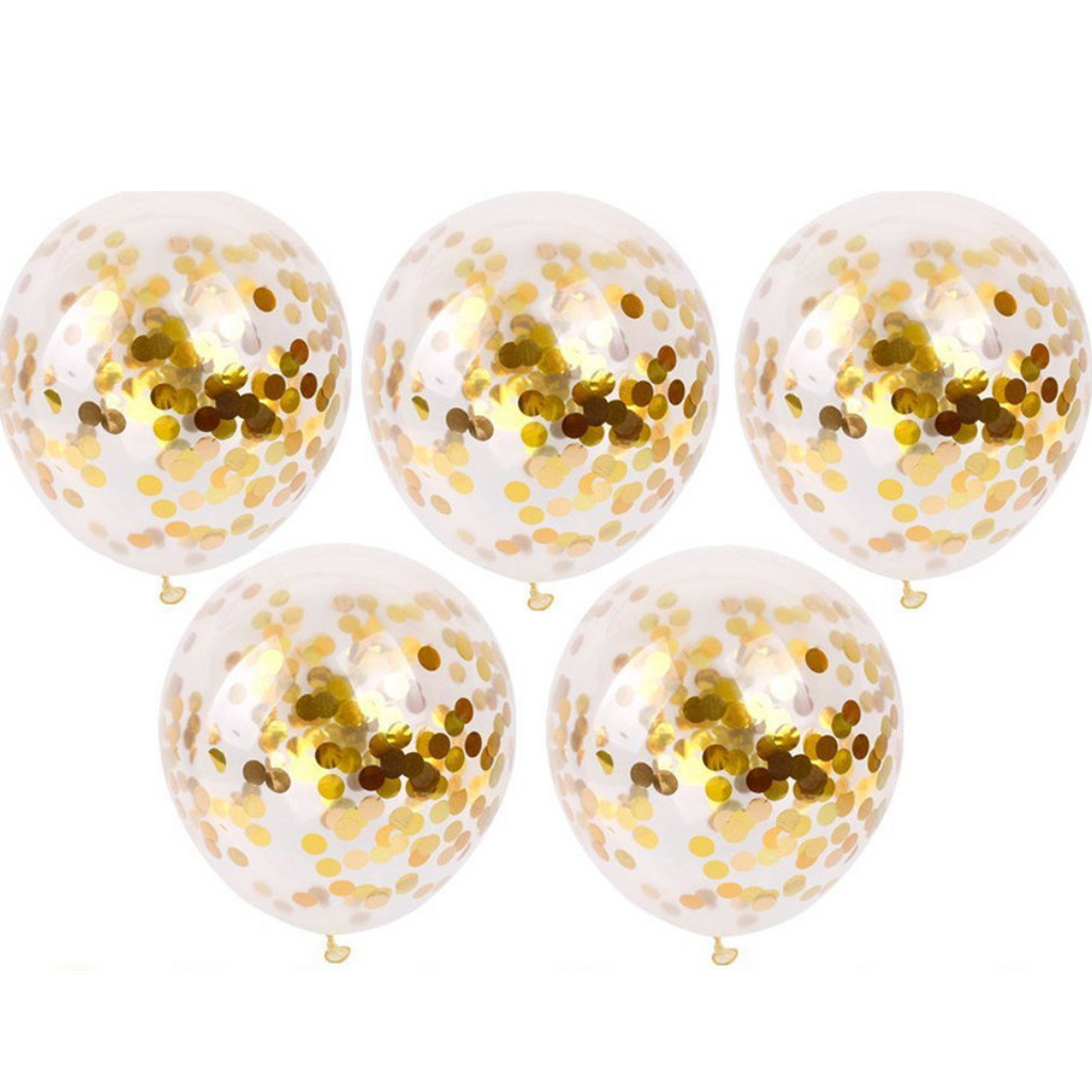 Set 5 Baloane Latex Transparente cu Confetti Buline Aurii – Ideale pentru Petreceri și Aniversări!
