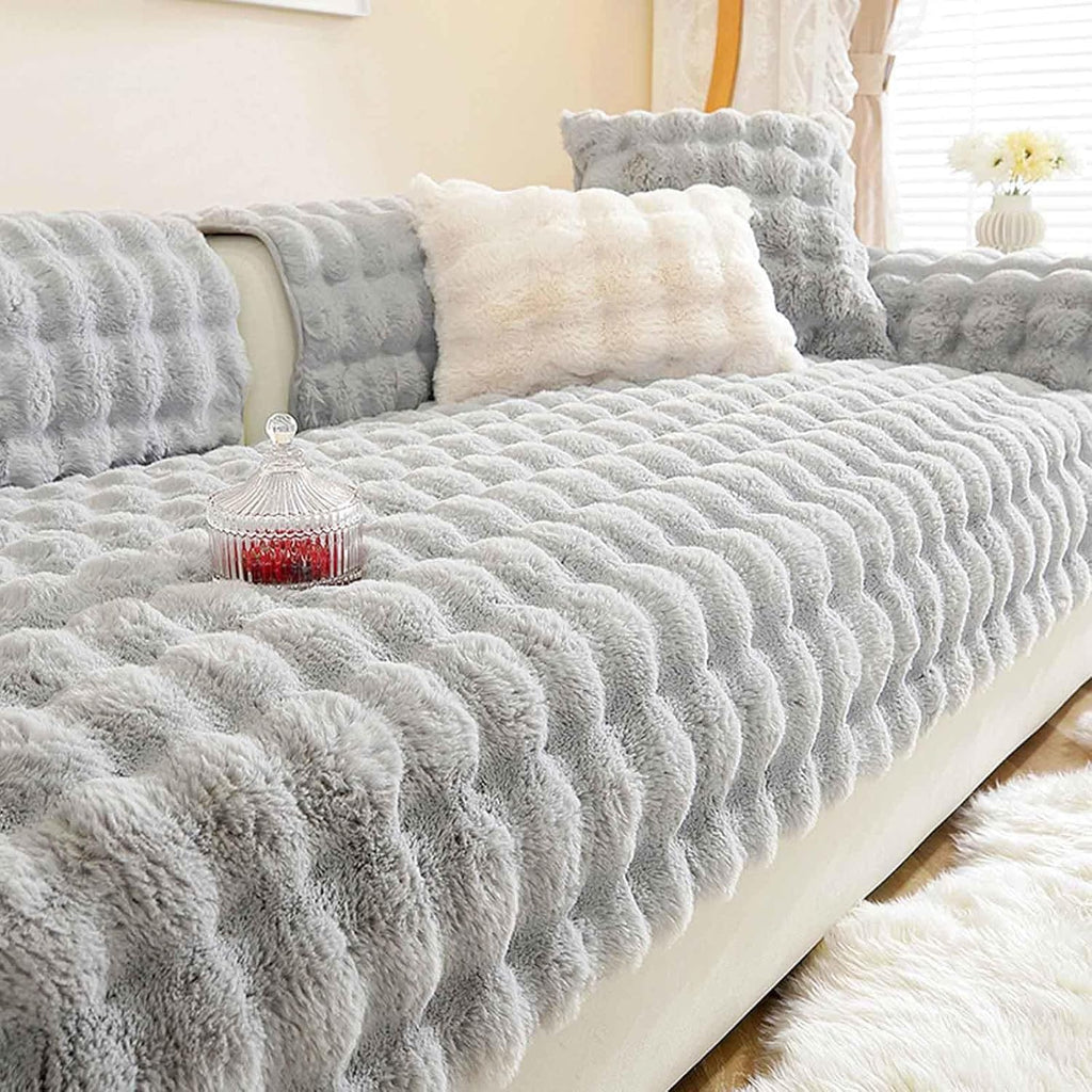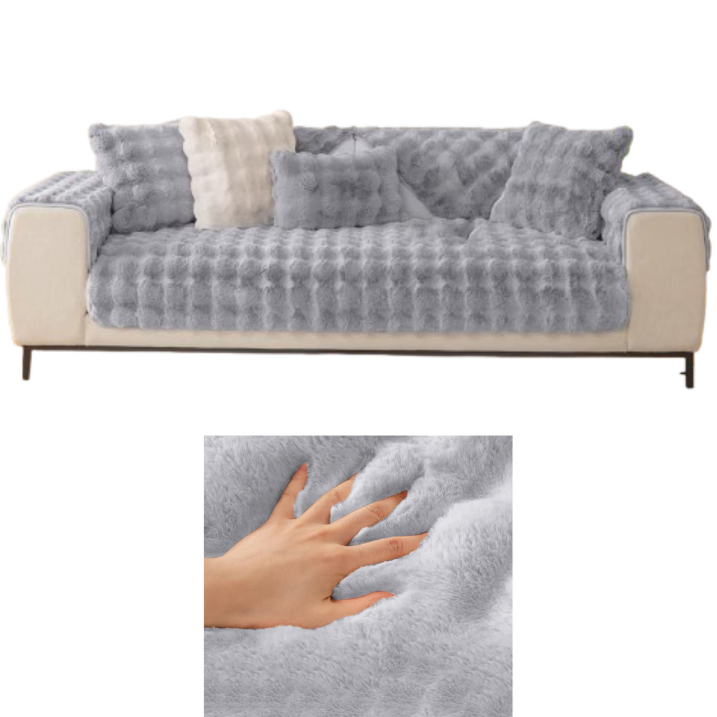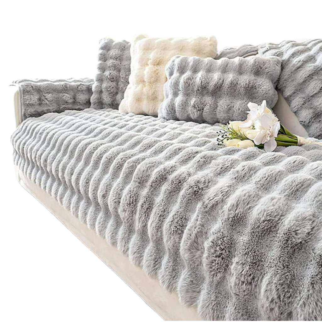 Set Canapea Ultra-Pufos – Blană Artificială, 2 Cuverturi + 2 Huse Cotiere, Confort și Eleganță, Gri Deschis