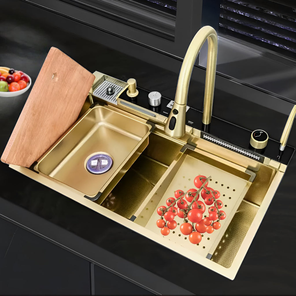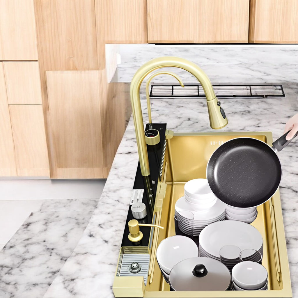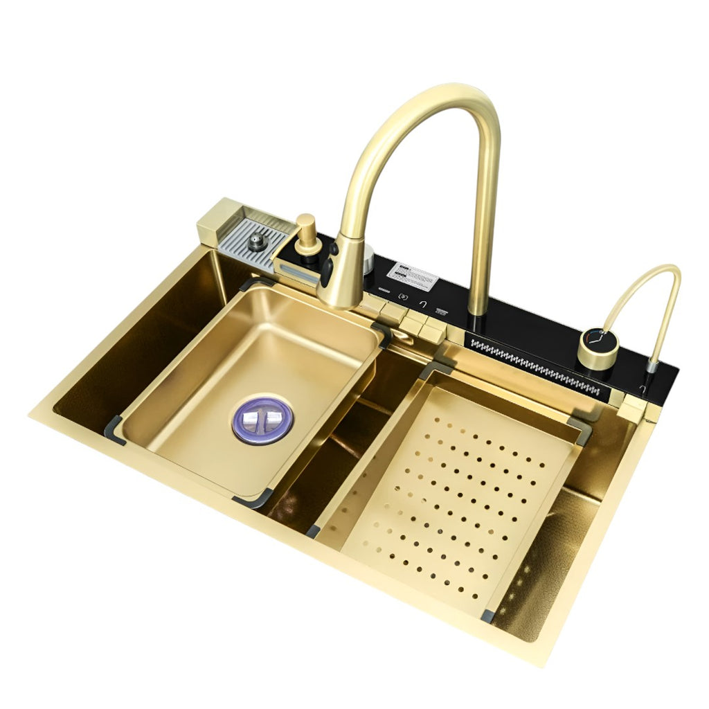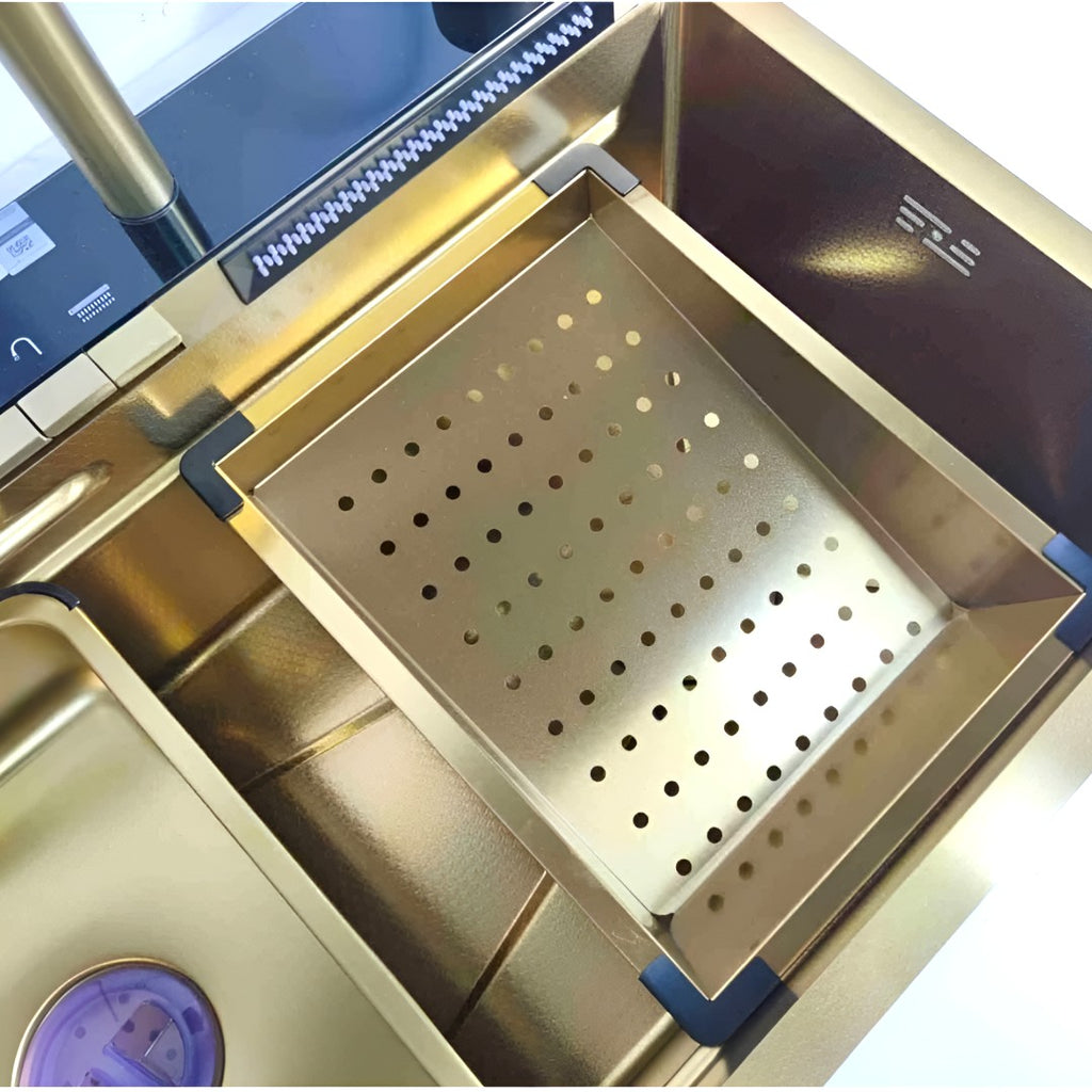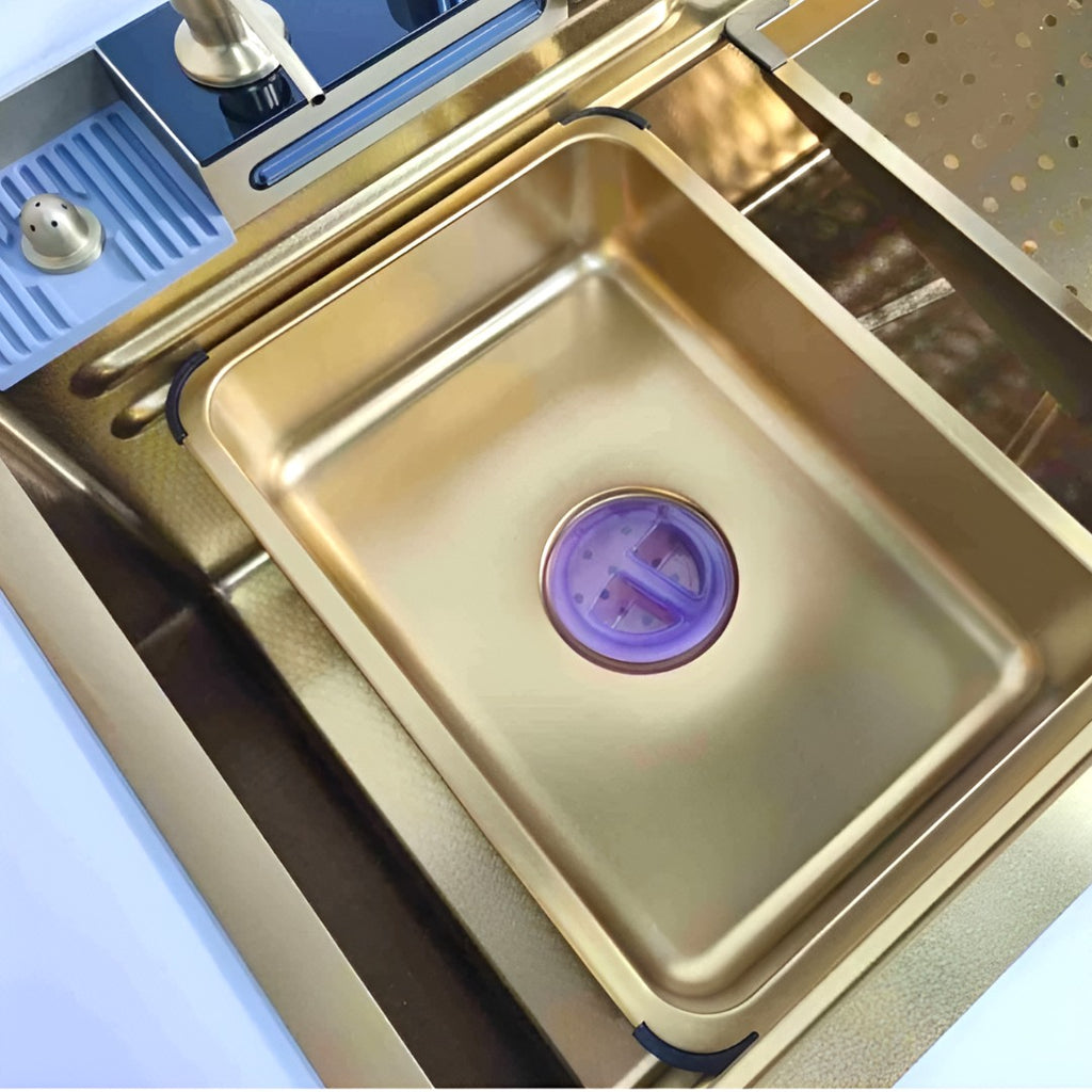 Chiuveta de bucătărie multifunctionala cu finisaj auriu nu este doar o piesă utilă, ci și o declarație de stil în orice bucătărie modernă. Iată câteva detalii suplimentare despre acest produs: