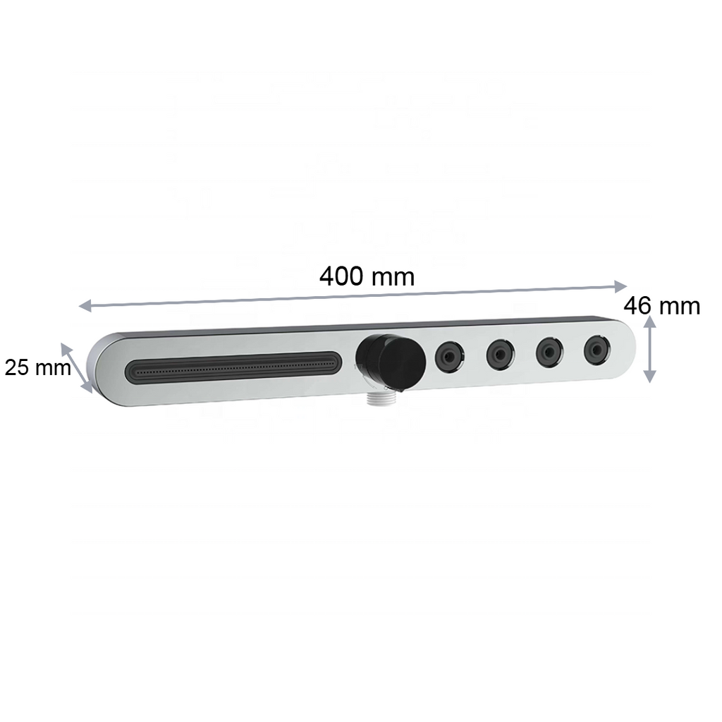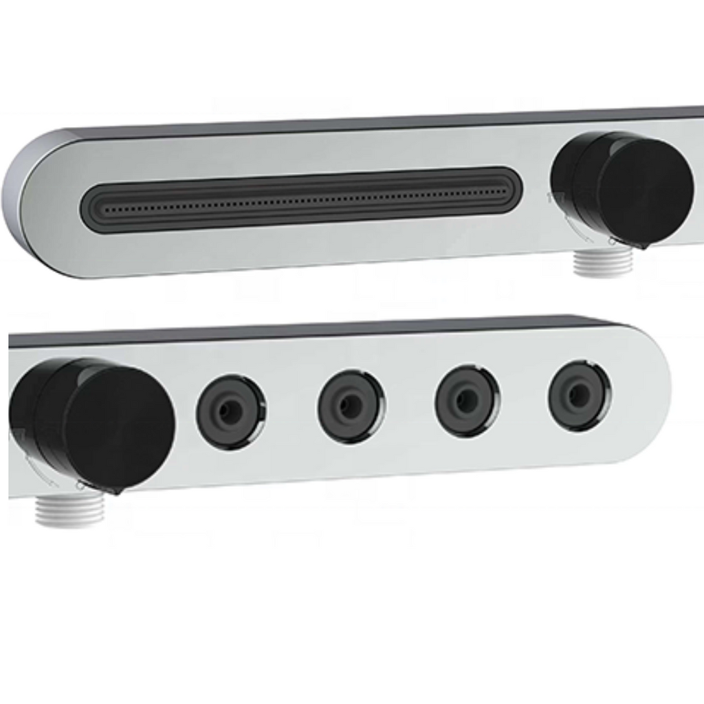 - Panou orizontal cu mai multe duze de pulverizare concepute pentru diferite tipuri de jet de apă.