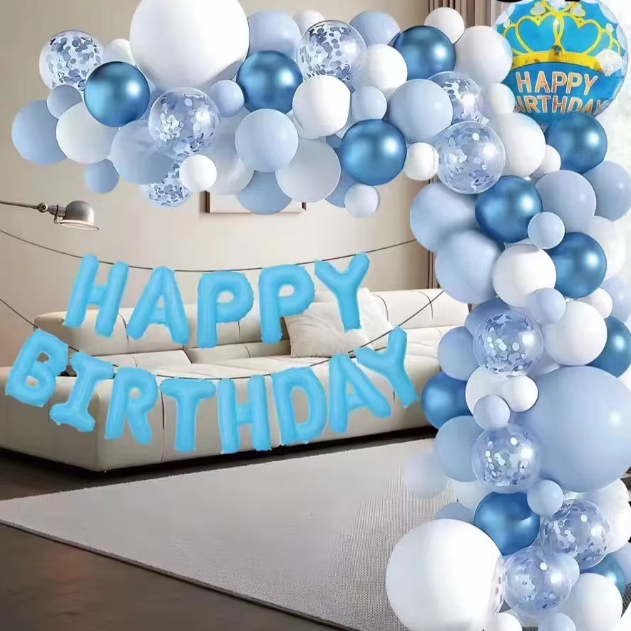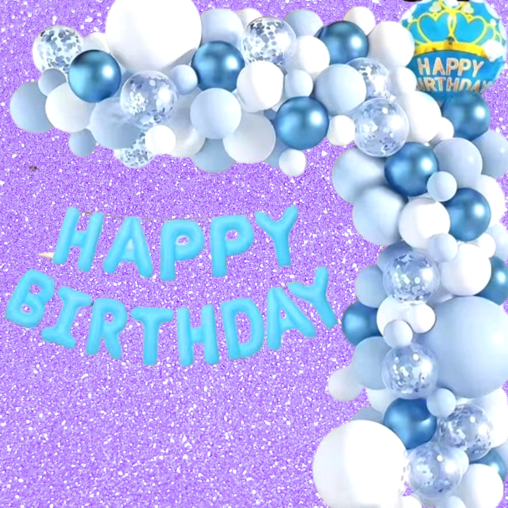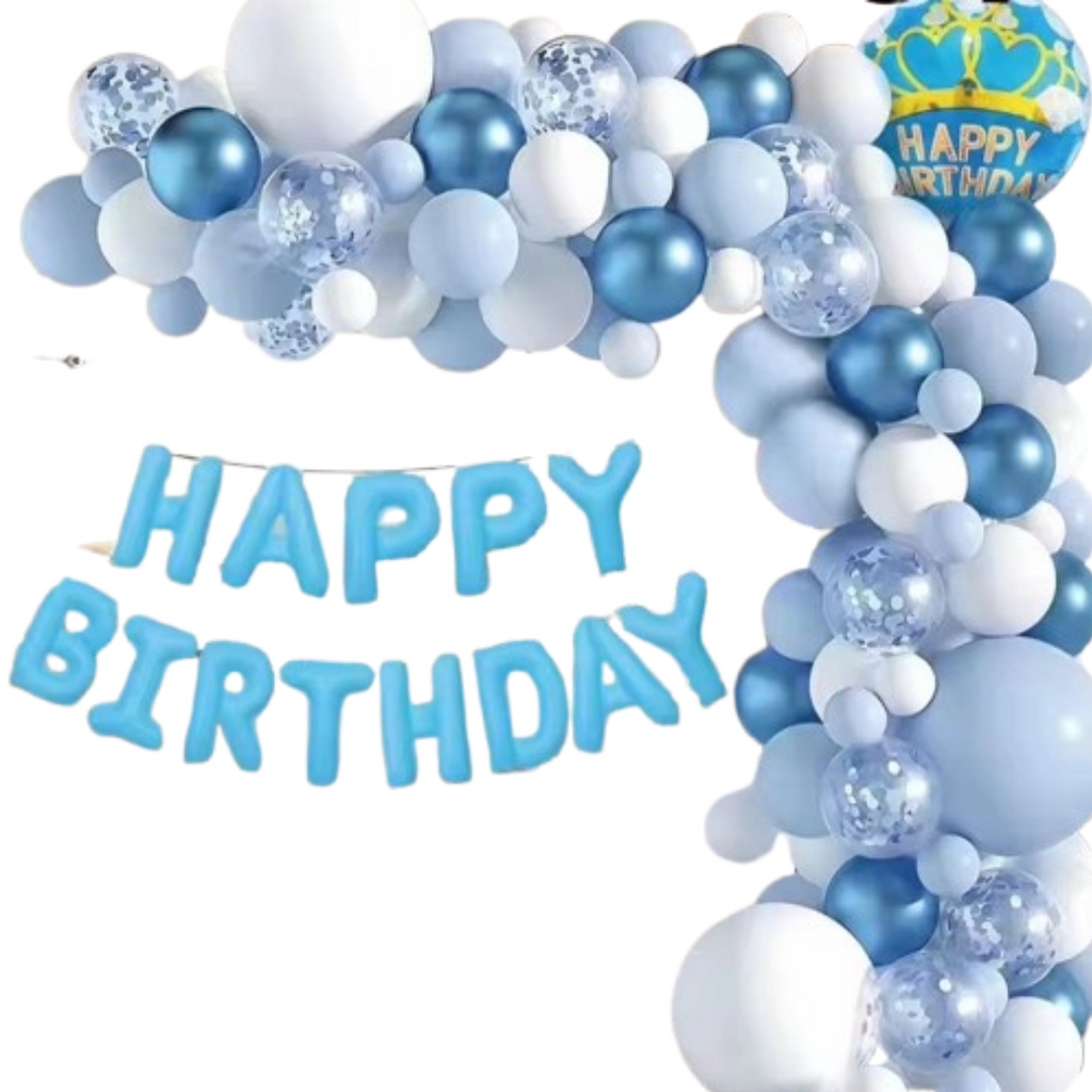Transformă orice petrecere aniversară într-un eveniment spectaculos cu acest set complet pentru decor! Arcada cu baloane în nuanțe elegante de alb și albastru creează un efect vizual impresionant, perfect pentru orice tematică de sărbătoare. Bannerul „Happy Birthday” adaugă un plus de farmec și face ca decorul să fie gata de fotografii memorabile.