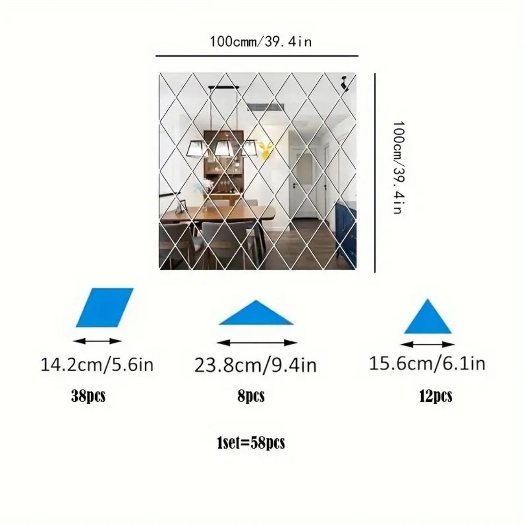 Setul conține 58 de piese de oglinzi, care pot fi aranjate în diferite modele și dimensiuni, în funcție de preferințele dvs.