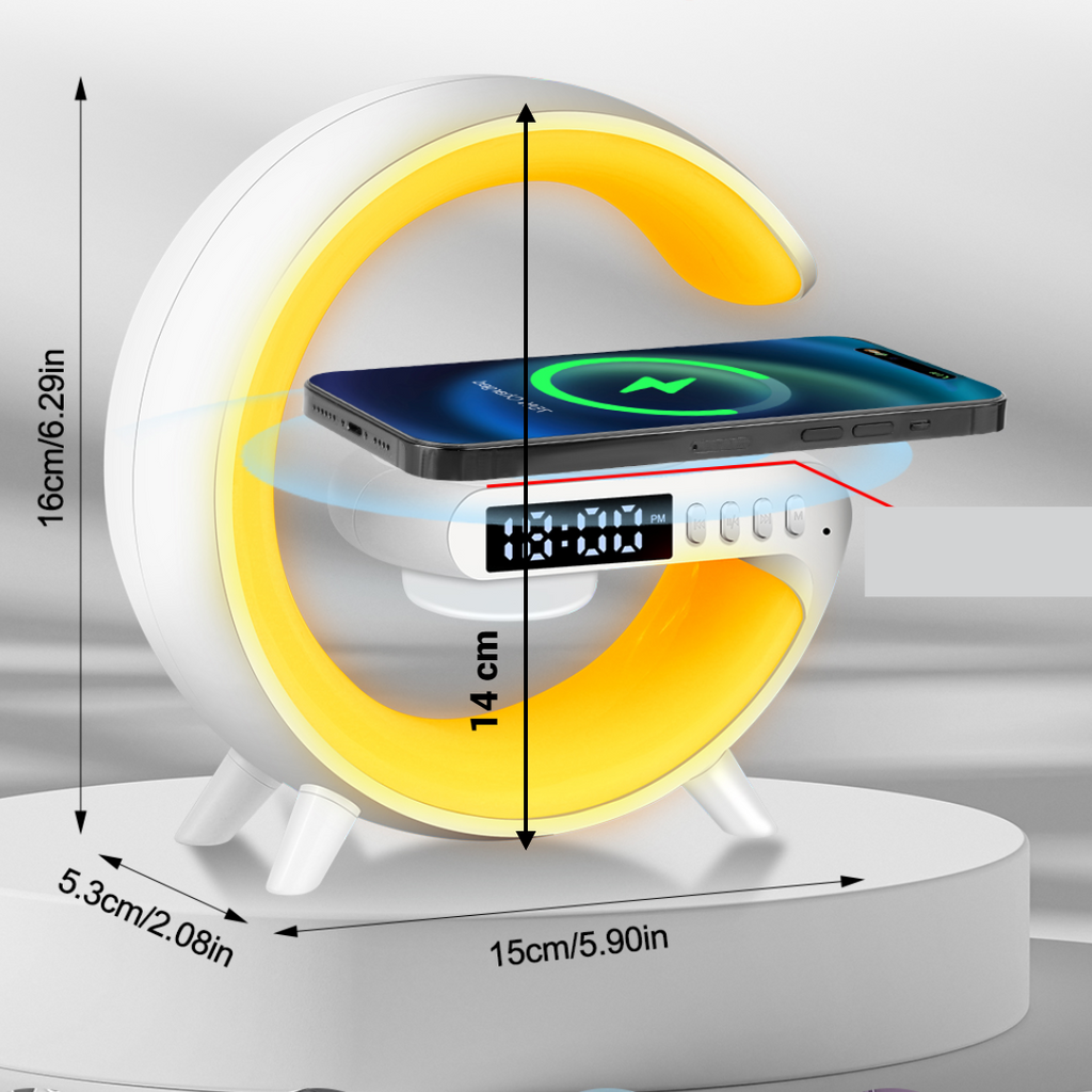 Boxa Mică Bluetooth G63 cu Stație de Încărcare Wireless și Lampă RGB este un dispozitiv multifuncțional, care oferă o experiență audio de calitate superioară, încărcare wireless convenabilă și iluminare ambientală personalizabilă. Iată mai multe detalii despre acest produs: