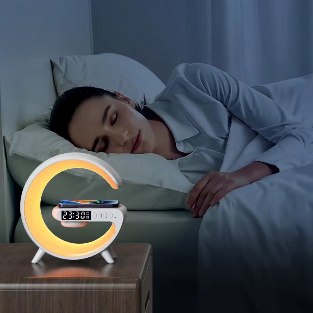 Descoperiti confortul si versatilitatea unei solutii all-in-one cu lampa RGB, incarcator wireless si boxa Bluetooth - tot ce aveti nevoie pentru o experienta de relaxare si divertisment completa intr-un singur dispozitiv.