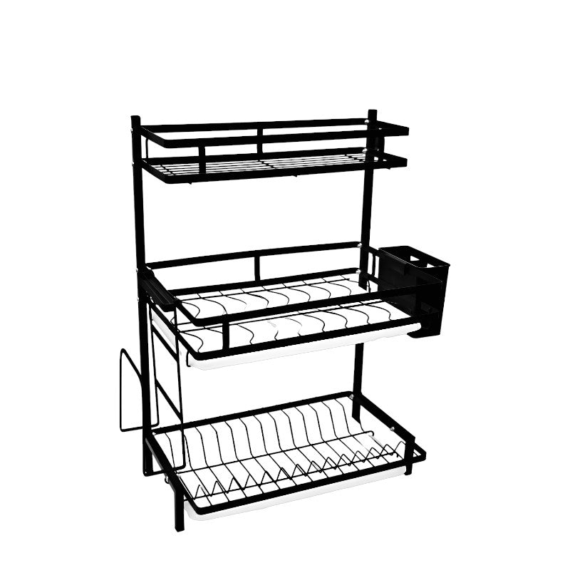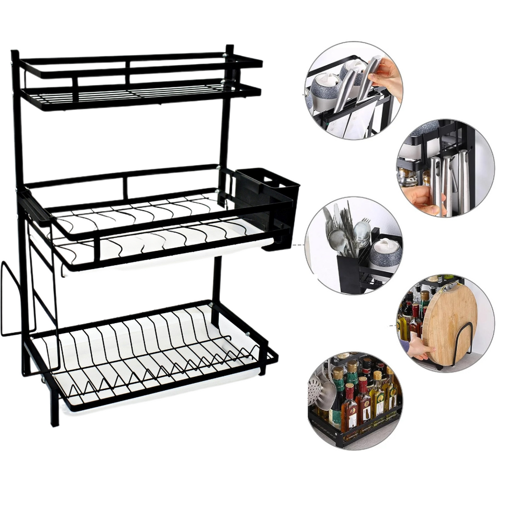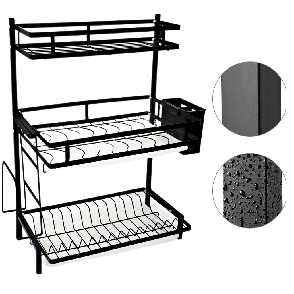 Suport condimente, borcane, oliviere, ustensile bucatarie, cu 3 nivele, cu tava de scurgere