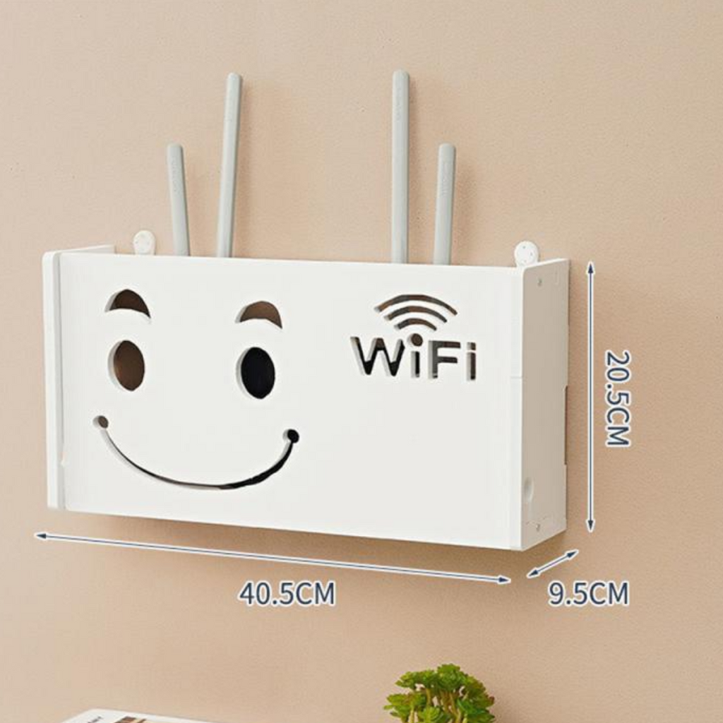 Cutia de router masoara 40.5 * 9,5 * 20.5 cm, suficient de mare pentru a tine router WIFI, telefon, telecomanda, cablu si asa mai departe.