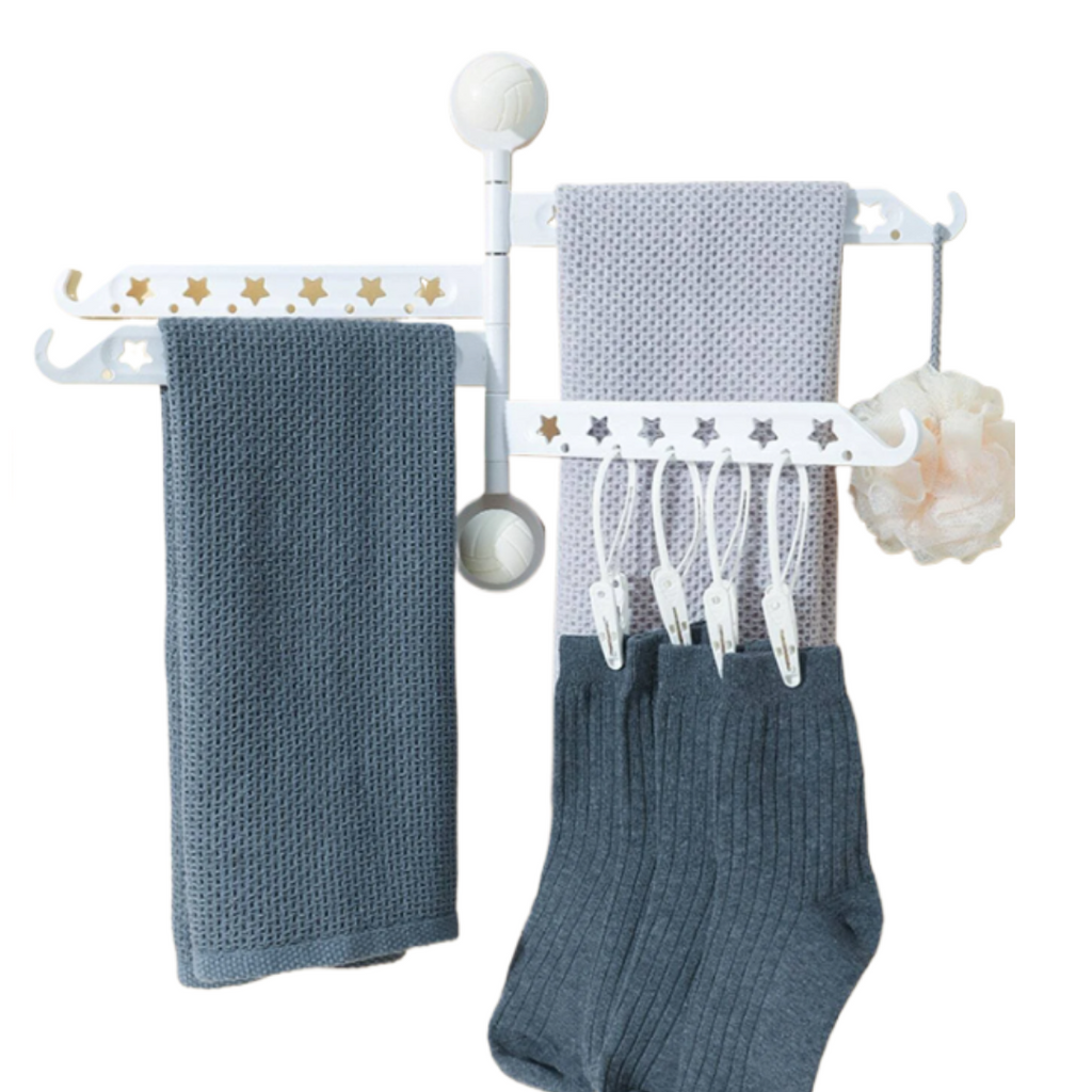 Cu patru brațe pentru prosoape și umerașe, acest suport multifuncțional este ideal pentru a atârna prosoapele proaspăt spălate sau hainele recent purtate. Fie că îl folosești în baie pentru a avea mereu la îndemână prosoapele sau în dormitor pentru a-ți pregăti hainele pentru ziua următoare, acest suport este practic și versatil.