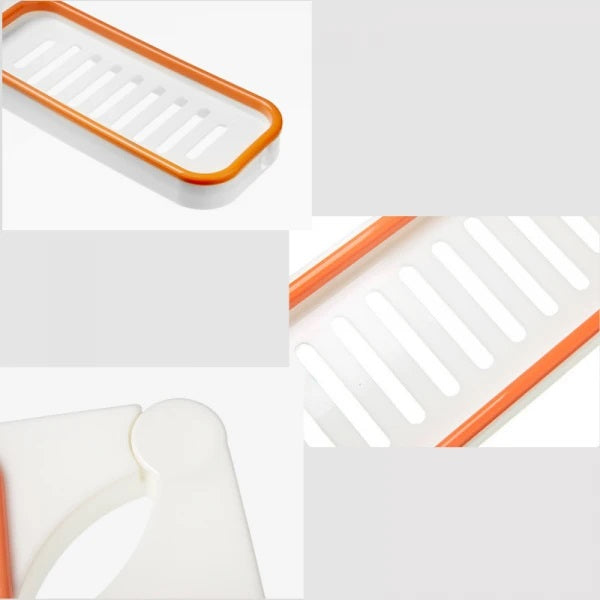 1. Conceput ca un suport dublu ce poate fi pliat si montat atat deasupra chiuvetei din baie la un unghi de 180°, cat si pe colt la un unghi de 90°.