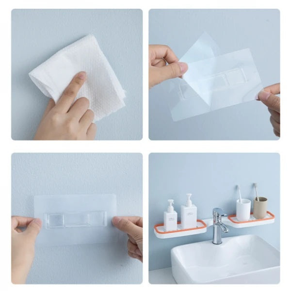 Se instalează fără efort cu ajutorul benzii adezive, lăsând pereții și gresia nedeteriorate.