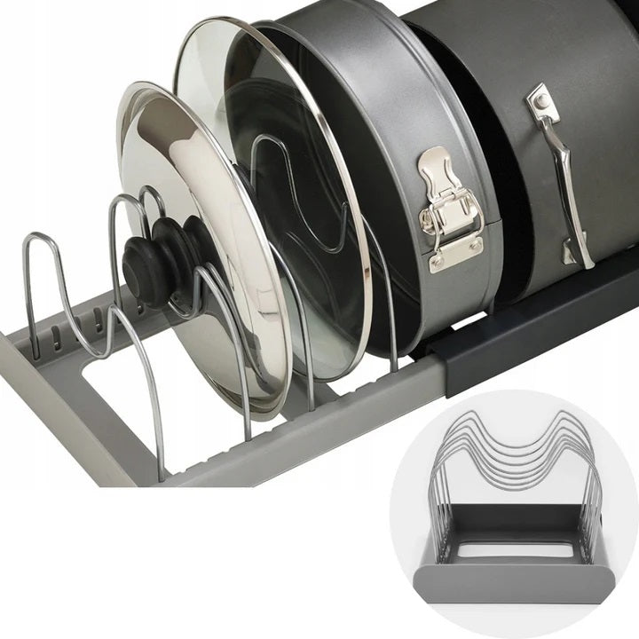 Solutia suprema pentru o bucatarie organizata si eficienta. Conceput pentru a tine capace, oale si tigai in ordine perfecta, acest suport revolutionar este exact ce iti trebuie pentru a transforma haosul in armonie.