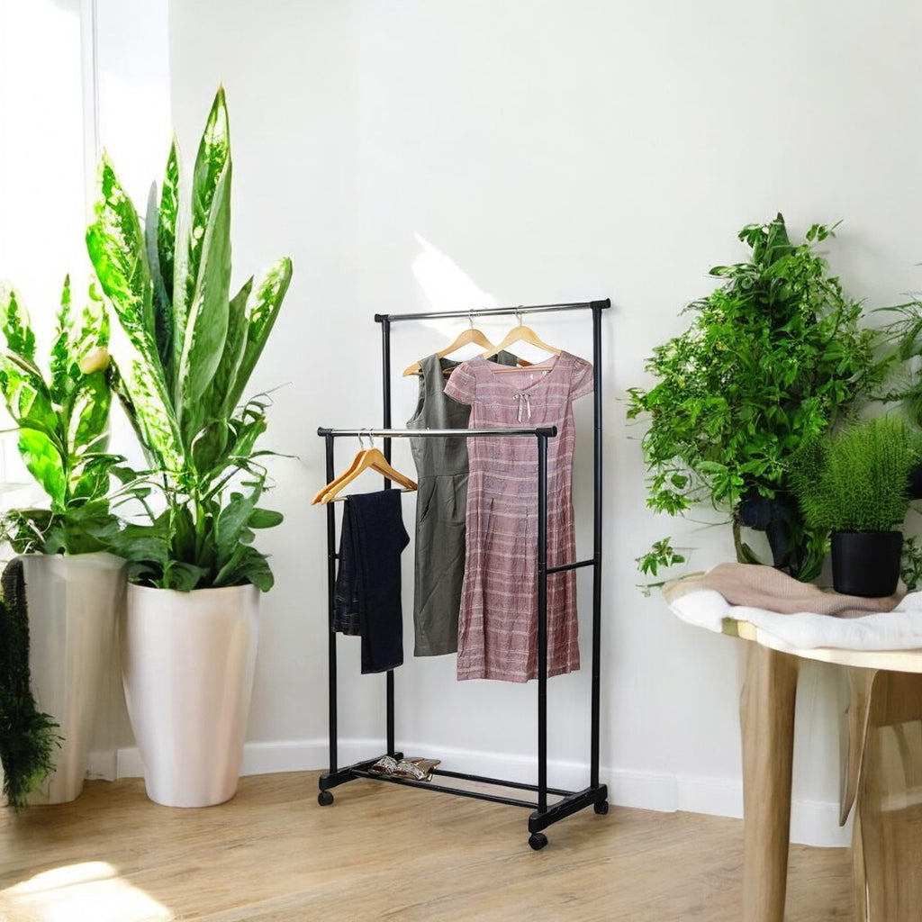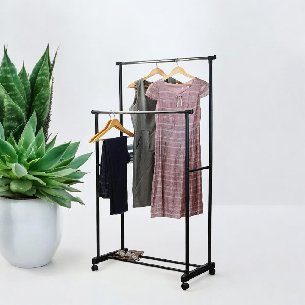 Organizează-ți hainele eficient și practică, cu suportul pentru umerașe și haine cu înălțime reglabilă!