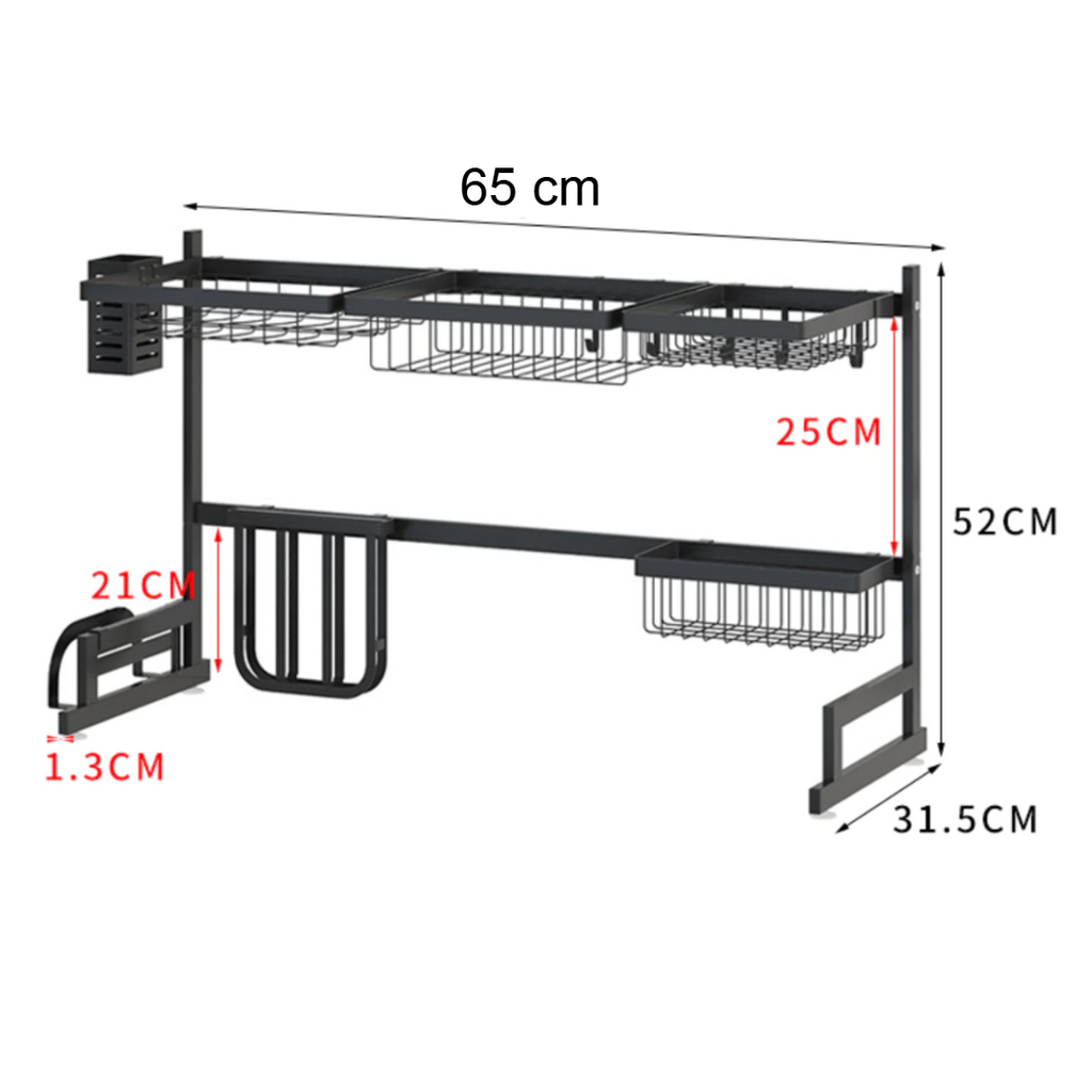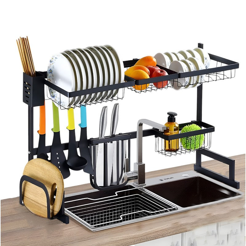 Suport multifunctional pentru uscarea vaselor, poate organiza toate ustensilele, furculitele, farfuriile, buretii de spalat vase, capace, fructe, legume. Toate articolele din bucatarie intr-un singur loc. ( Nu contine suportul pentru cutite)