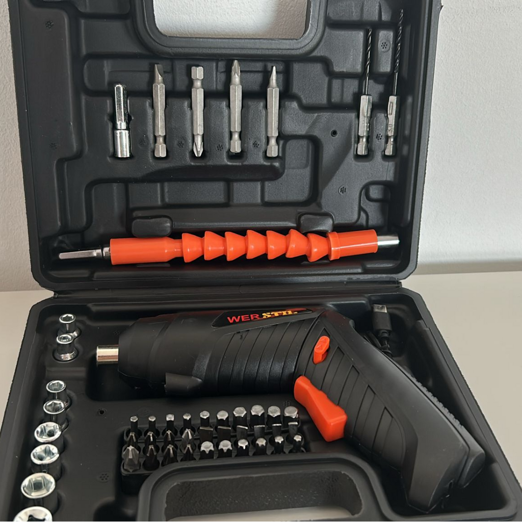 Surubelnita Electrica 4.2V cu 47 Piese, Incărcare USB, 250RPM – Set Complet pentru Lucrari de Bricolaj si Reparatii Acasa