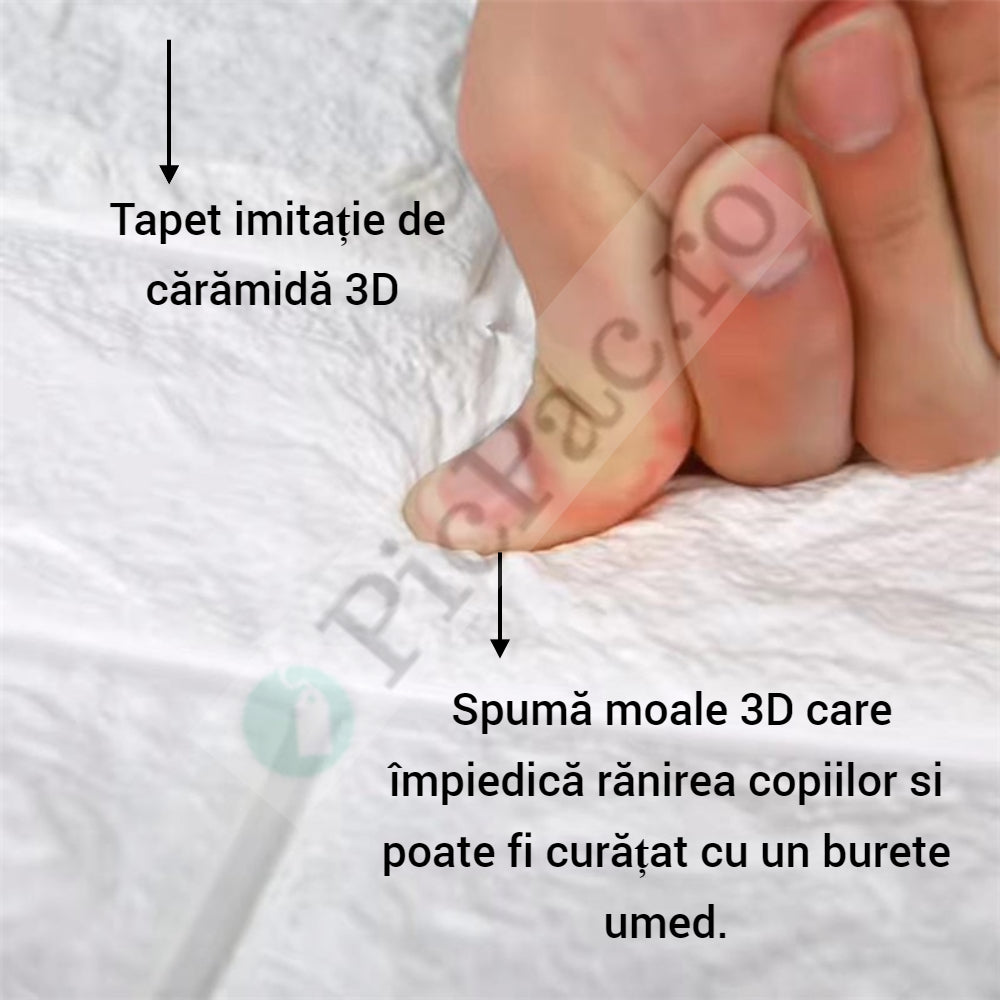 - Este fabricat din spuma ca material de baza si realizat intr-un montaj pe perete cu efect natural de caramida.