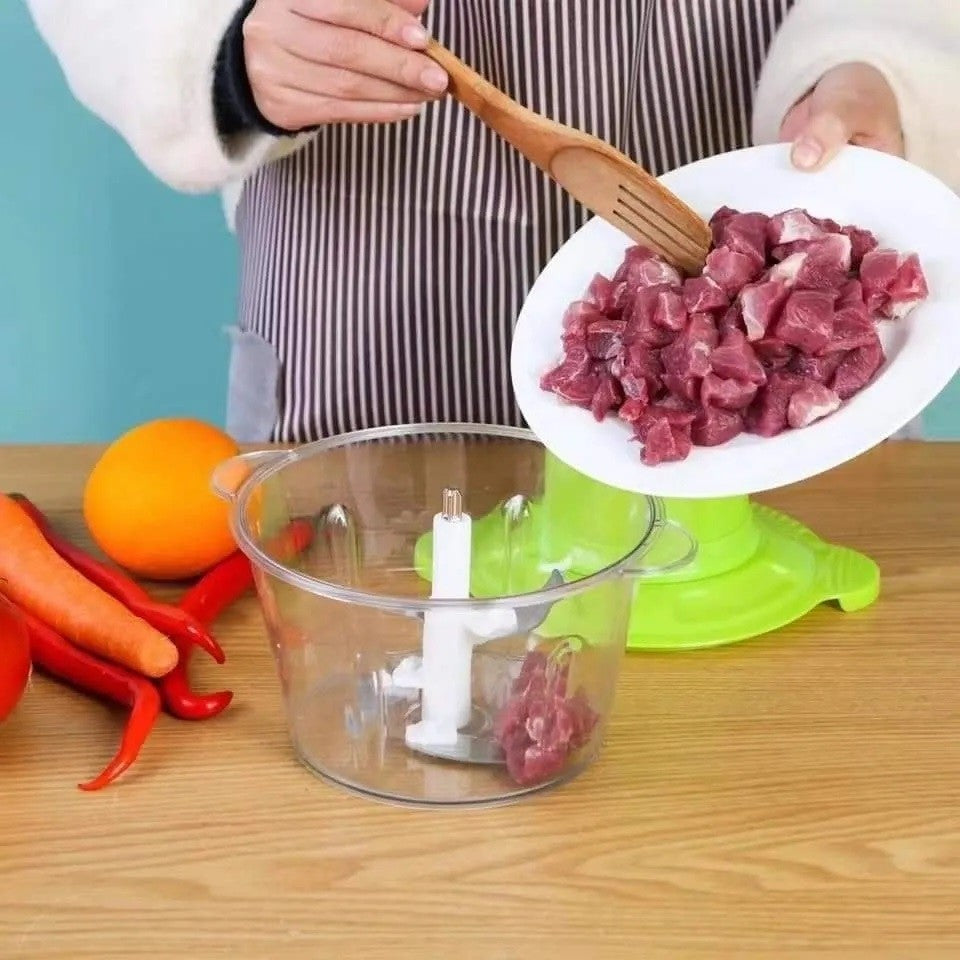Echipat cu un cutit dublu din otel inoxidabil, veti putea toca sau marunti usor legume, fructe, nuci, ciocolata, carne in doar cateva secunde.