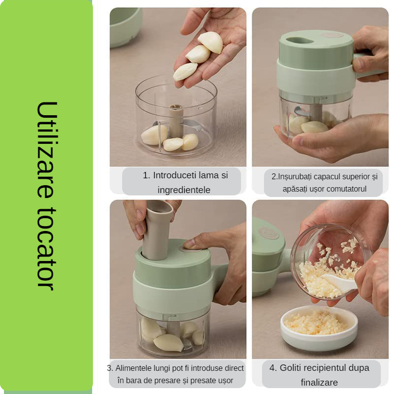 ✔️ Este usor de folosit: Dupa ce ai instalat-o, tot ce trebuie sa faci este sa pui alimentele dorite si sa le toci!