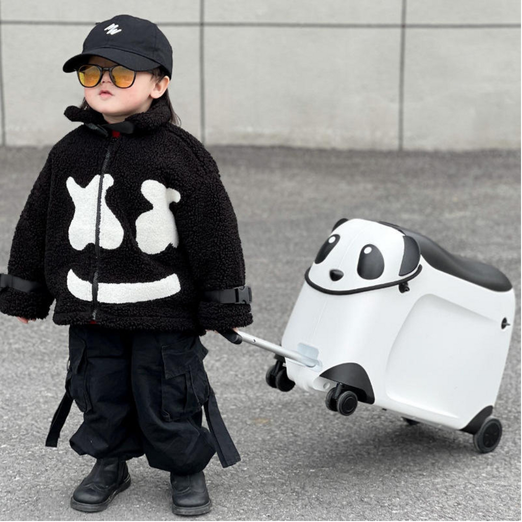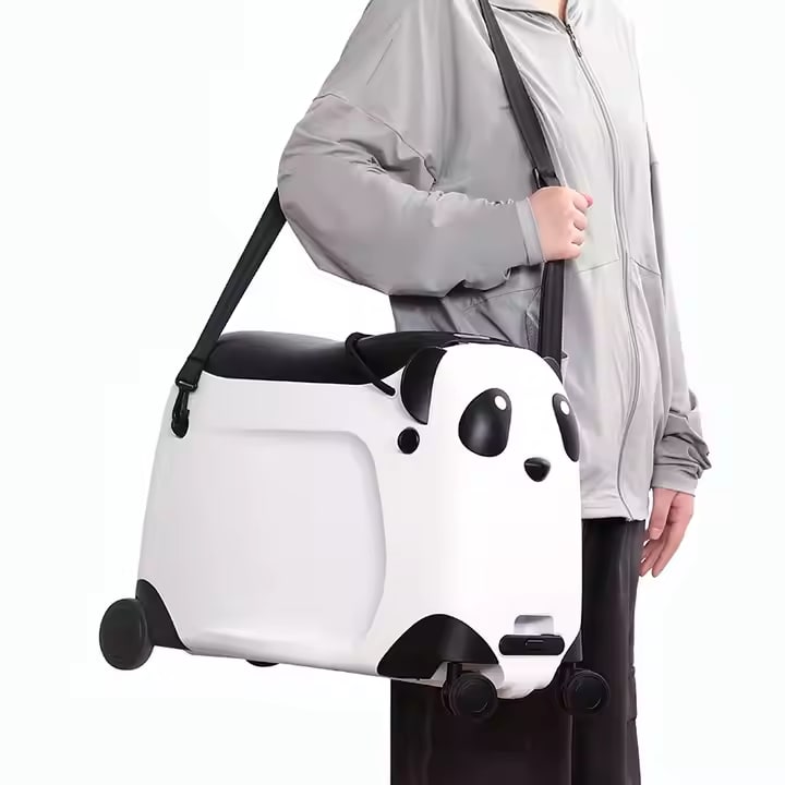 Această valiză panda cu roți, scaun și funcție de depozitare este alegerea perfectă pentru călătoriile celor mici, aducând atât utilitate, cât și distracție în fiecare vacanță.