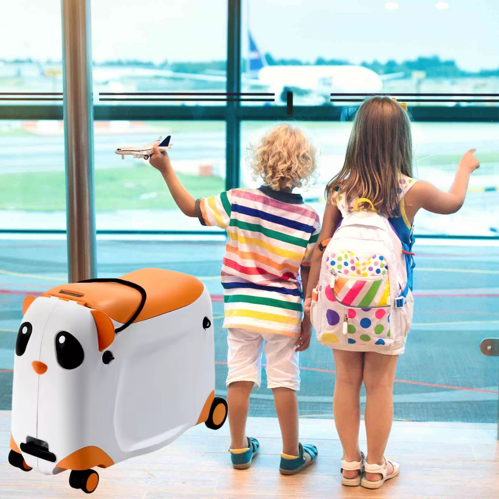 Valiză pentru Copii, Model Panda, cu Roți, Funcție de Scaun și Depozitare